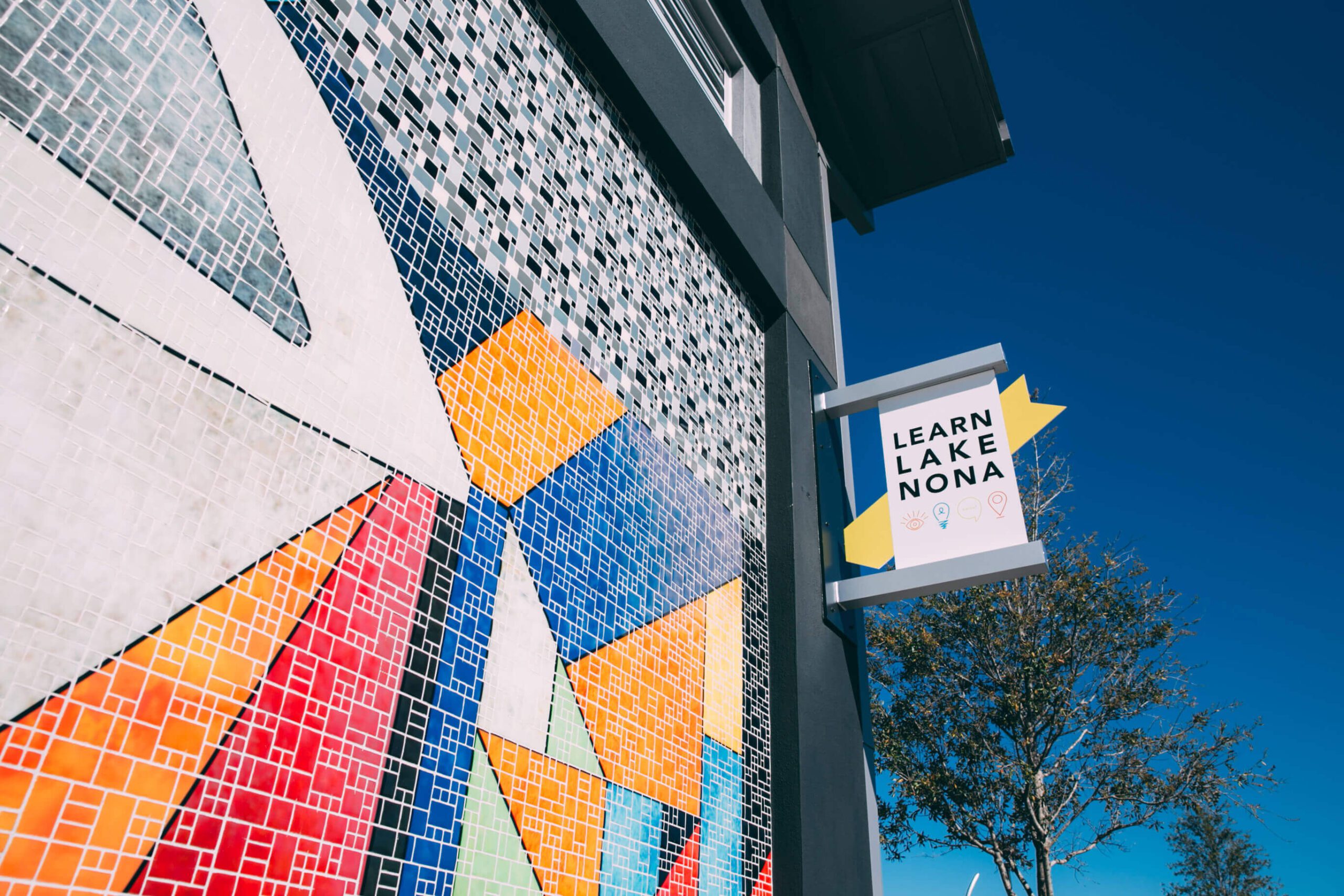 Canvas Restaurant & Market is lined with a mosaic tile mural that is inspired by the fresh Florida cuisine that Canvas Restaurant serves up. Canvas is a captivating lakeside restaurant and dining destination for the whole family. With its casual yet vibrant ambiance and ample space for large groups, this approachable eatery invites guests to unwind by the water. Whether you’re seeking a leisurely meal or a lively gathering, Canvas promises an approachable and memorable dining experience in the heart of Laureate Park.