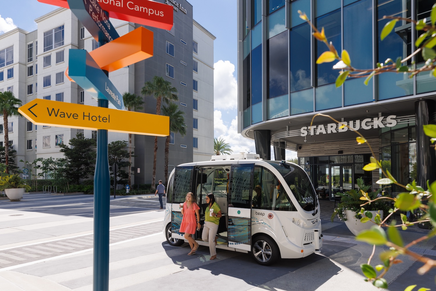 This Starbucks coffeehouse is located in Lake Nona Town Center on the corner of Lake Nona Blvd and Veterans Way on the first floor of the dNata building. The menu features a diverse selection of coffee and tea beverages, as well as a selection of sandwiches, snacks and bakery items.